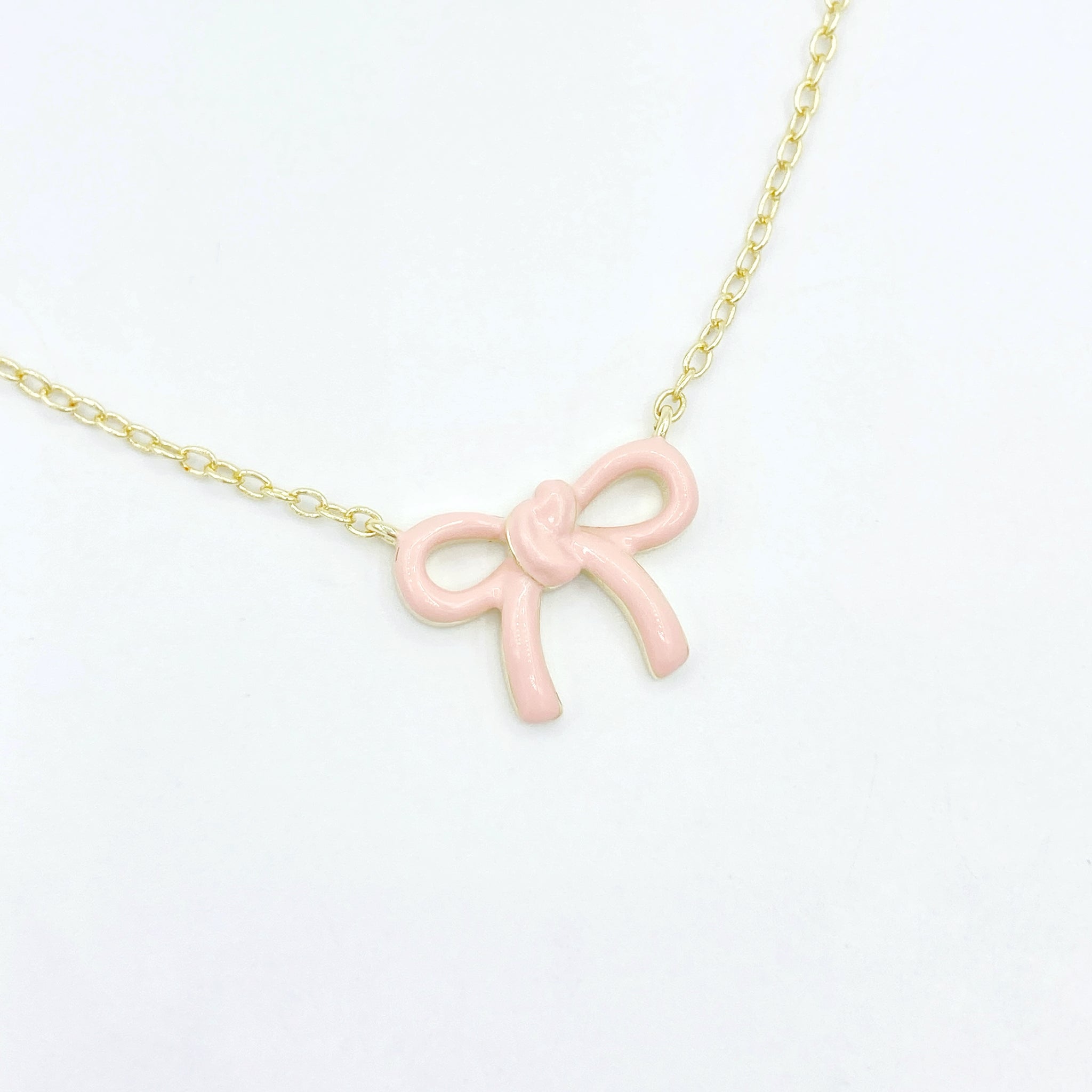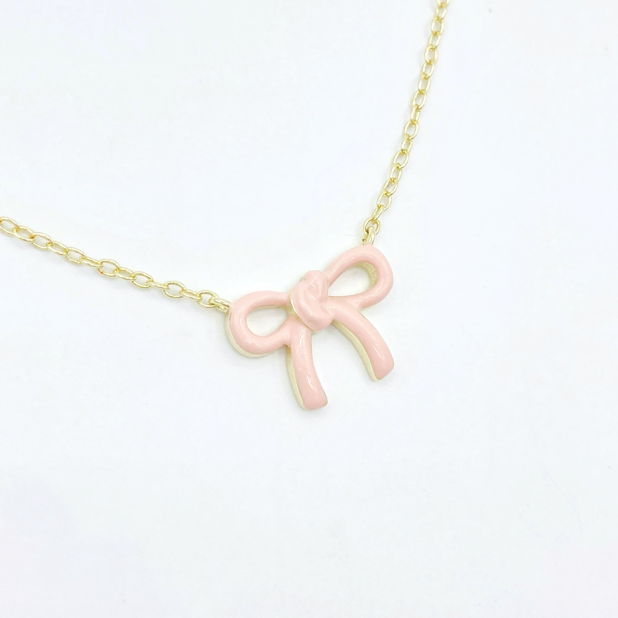 Enamel Bow Necklace 2.0 - Light Pink
