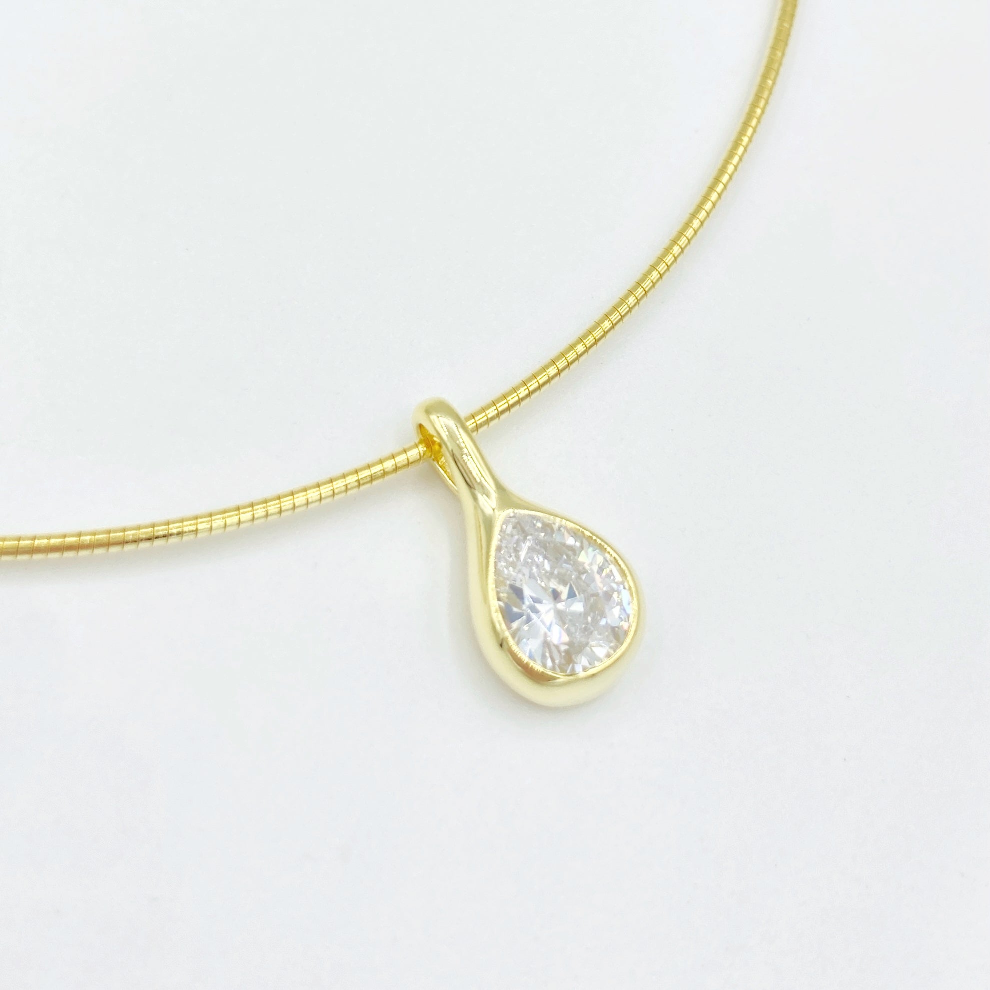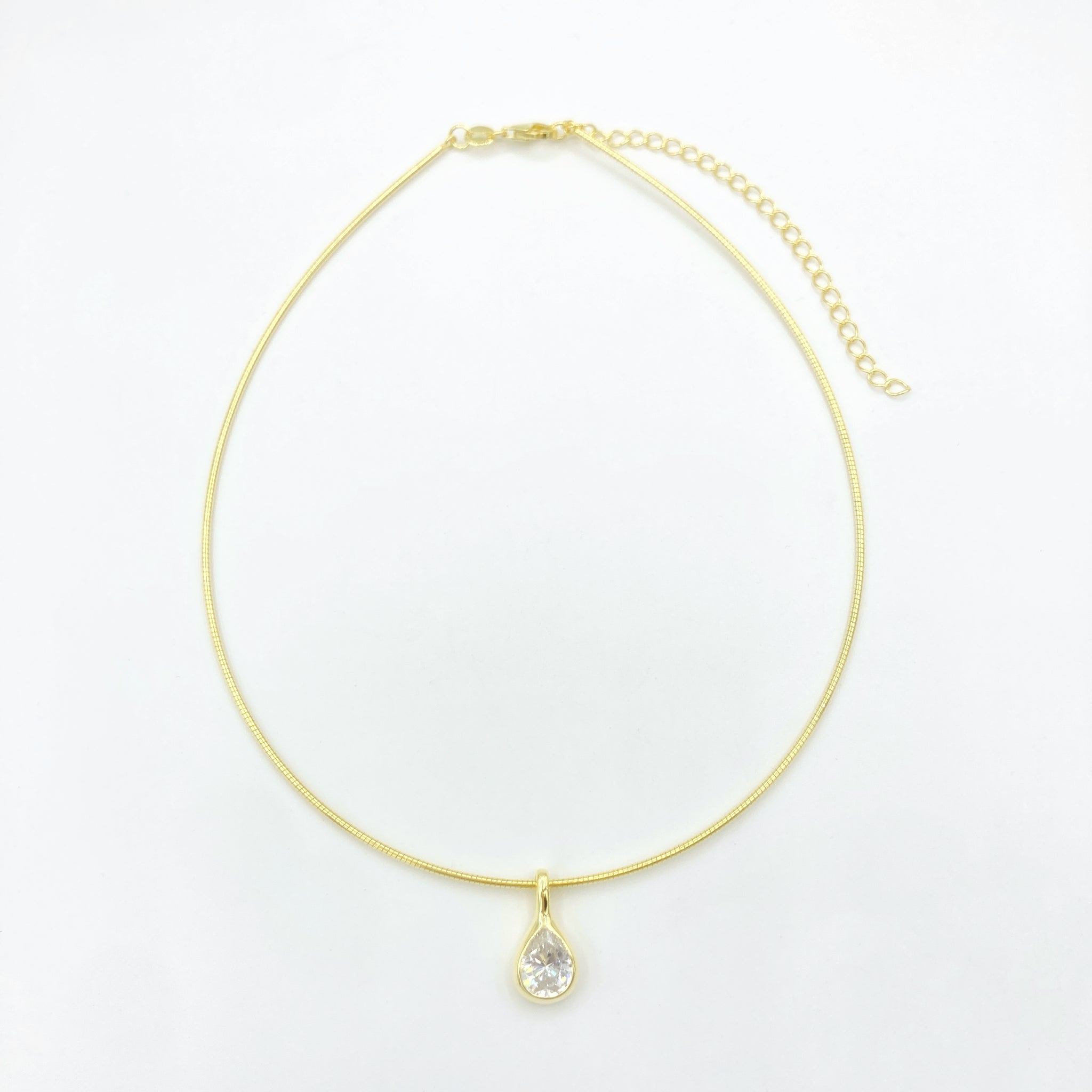 Bezel set teardrop simulated diamond on a an omega tube chain choker.
